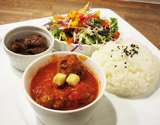 茨城のブランド「ローズポーク」のロースとバラ肉を使って食感の違いと美味しさをピリ辛カレーに仕上げています |