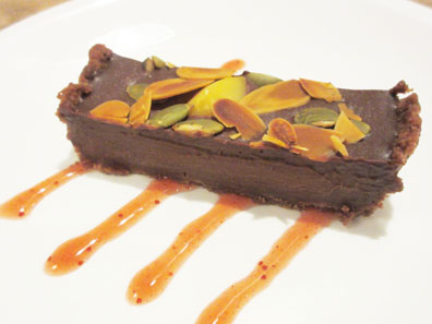 マロンやかぼちゃの種、アーモンドスライスをトッピングしてお味は大人のビターで秋らしいタルトにしました。めっちゃチョコでめっちゃ美味しいよん